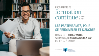Nous vous invitons à consulter le Programme de formation continue 2020-2021 pour en savoir plus sur les modalités d’inscription, le contenu des formations ainsi que les formateurs.