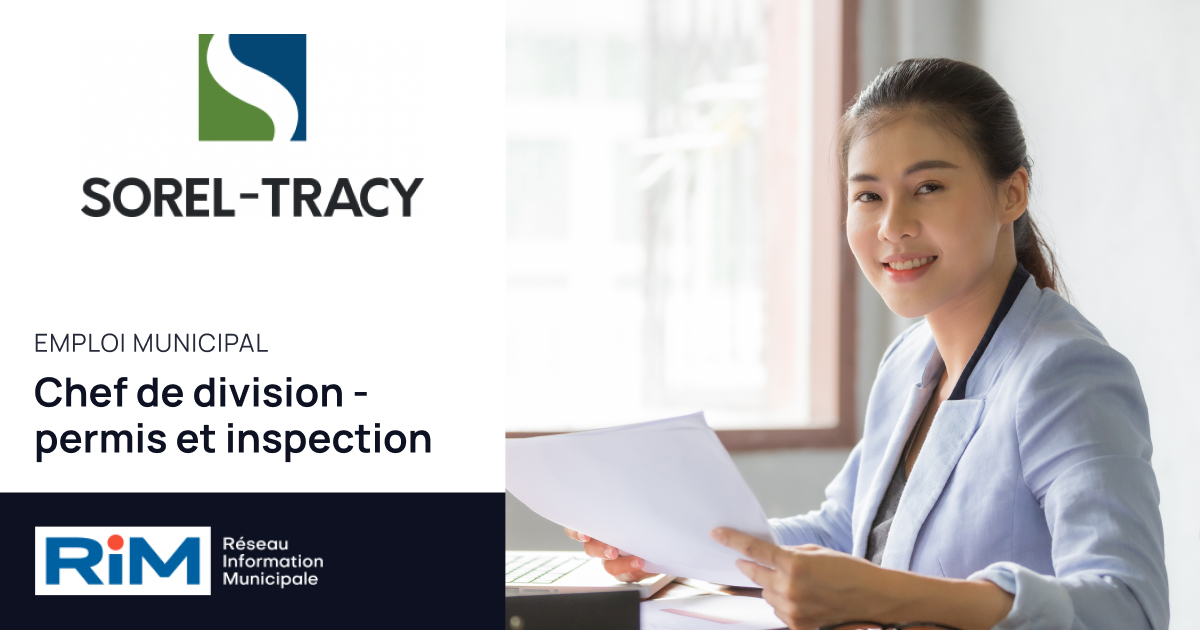 La Ville de Sorel-Tracy est à la recherche d’une ou d’un chef de division – permis et inspection. Sous la supervision de la directrice du Service de l’urbanisme, la ou le chef de division – permis et inspection est responsable de la gestion des ressources humaines et financières de sa division et de la coordination des dossiers, impliquant des intervenants multiples visant l’application et le respect des règlements d’urbanisme, municipaux et autres lois.